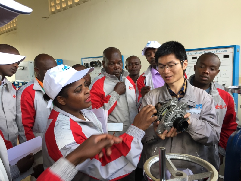 為幫助肯尼亞政府對(duì)本國(guó)大專院校的汽車維修專業(yè)進(jìn)行升級(jí)建設(shè),福建船政交通職業(yè)學(xué)院從2018年開(kāi)始為肯尼亞教育部制定汽修專業(yè)師資培訓(xùn)方案,開(kāi)發(fā)《汽車使用與維護(hù)》《汽車發(fā)動(dòng)機(jī)構(gòu)造與維修》《汽車電氣系統(tǒng)檢修》等8門汽修專業(yè)核心課程英文版教材及其課程資源,并于2018年6月至12月先后派出5名優(yōu)秀教師赴肯尼亞,為肯尼亞教育部從全國(guó)13所院校選拔的20名教師開(kāi)展專業(yè)培訓(xùn)和教學(xué)指導(dǎo)。根據(jù)肯尼亞教育部大中專升級(jí)改造項(xiàng)目要求,汽車運(yùn)用工程系老師運(yùn)用自身豐富的教學(xué)經(jīng)驗(yàn)和嫻熟的實(shí)踐技能,為肯尼亞教師量身定制培訓(xùn)方案,培訓(xùn)效果獲得肯尼亞參訓(xùn)教師和教育部的一致好評(píng)!