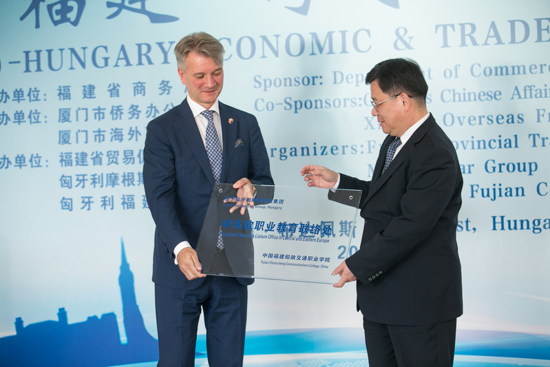 受福建船政交通職業(yè)學院委托,吳南翔廳長向匈牙利摩根斯達集團藝術(shù)總監(jiān)ALEX授予“中國福建船政交通職業(yè)學院中東歐職業(yè)教育聯(lián)絡(luò)處”牌匾,學院依托摩根斯達集團在中東歐開展職業(yè)教育合作。吳南翔廳長、何秀珍主任、郭國雄董事長和德布勒森大學校長佐爾坦共同為德布勒森大學、中國福建船政交通職業(yè)學院“通用航空應用技術(shù)研發(fā)中心(匈牙利德布勒森大學基地)”揭牌,搭建起兩校在通用航空領(lǐng)域合作的技術(shù)創(chuàng)新平臺、成果轉(zhuǎn)化基地和科技服務中心。德布勒森大學校長佐爾坦在接受記者采訪中表示,將充分發(fā)揮德布勒森大學和福建船政交通學院的各自優(yōu)勢,強強聯(lián)合,不僅僅在通用航空領(lǐng)域,要在各個方面全面開展產(chǎn)教研學用合作,共同打造中匈共建“一帶一路”產(chǎn)教研學用融合的典范。
