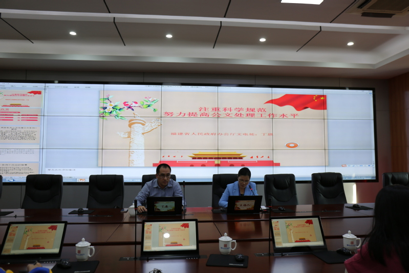 為進一步規(guī)范公文寫作,提升學(xué)院行政工作人員的公文處理水平,結(jié)合“不忘初心、牢記使命”主題教育,11月21日下午,學(xué)院特邀福建省人民政府辦公廳文電處主任丁恩蒞校作《注重科學(xué)規(guī)范 努力提高公文處理工作水平》專題培訓(xùn)。培訓(xùn)由學(xué)院副院長陳艷紅同志主持,機關(guān)各部門、各系部負責(zé)公文處理的業(yè)務(wù)人員參加了培訓(xùn)。