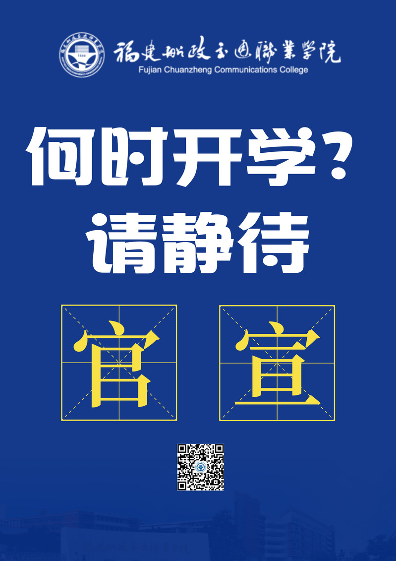 根據(jù)福建省委教育工委、省教育廳“在疫情得到有效控制前學(xué)生不返校、學(xué)校不開學(xué)”的要求,學(xué)院將科學(xué)評(píng)估開學(xué)條件,審慎研判開學(xué)時(shí)間,并提前一周通過福建船政交通職業(yè)學(xué)院官網(wǎng)(網(wǎng)址:http://www.aircomfortincwv.com/)和官方微信公眾號(hào)公布。