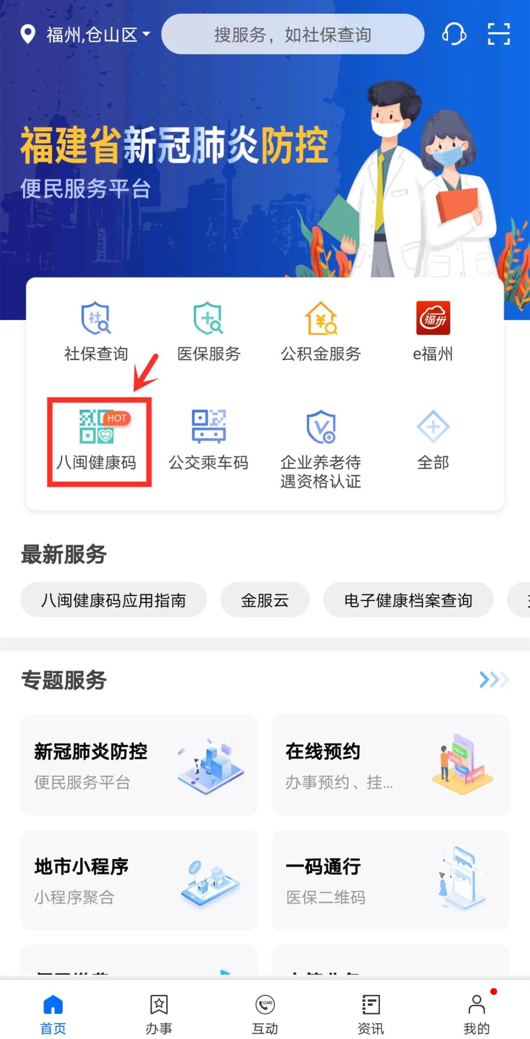 2.通過首頁“八閩健康碼”進(jìn)入服務(wù)