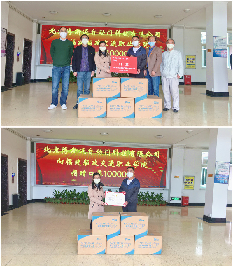 3月23日,北京博斯邁自動門科技有限公司總經(jīng)理許澤閔校友(95級交管專業(yè))委托同學(xué)代表向母校捐贈一次性防護(hù)口罩10000個(gè)。學(xué)院副院長、校友會會長陳艷紅代表學(xué)院接收了該批物資。