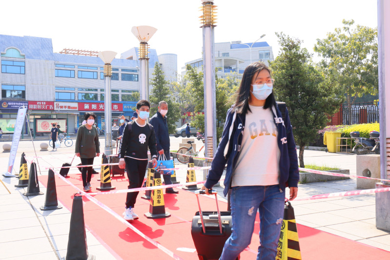 ▲引導(dǎo)學(xué)生有序入校