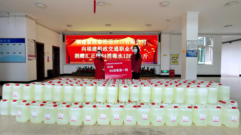 4月21日下午,愛心企業(yè)福建富勝泰浩進(jìn)出口有限公司劉龍閩總經(jīng)理向?qū)W院捐贈(zèng)84消毒水12000公斤。學(xué)院副院長(zhǎng)陳艷紅代表學(xué)院接收了該批物資。