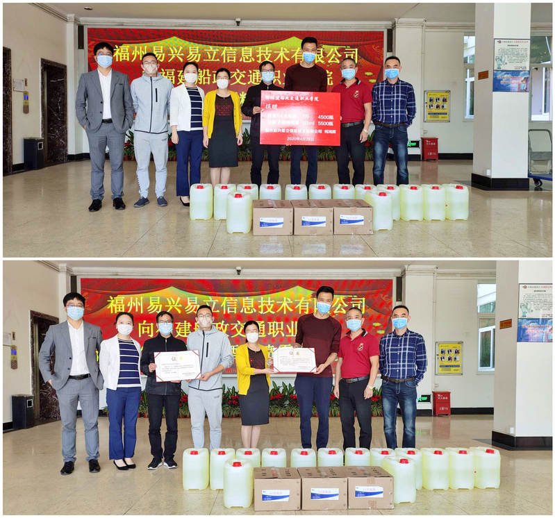 日前,愛心校友企業(yè)福州易興易立信息技術(shù)有限公司為學(xué)院訂購了4500瓶84消毒液和5500瓶酒精噴霧,總價值近6萬元。