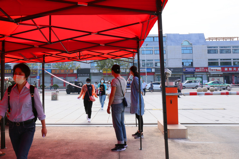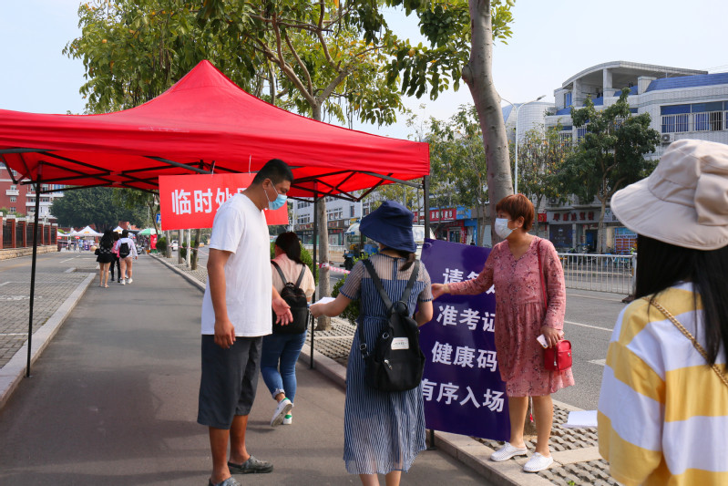 ▲引導(dǎo)考生有序進(jìn)入考場(chǎng)