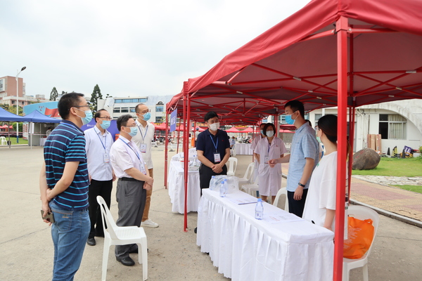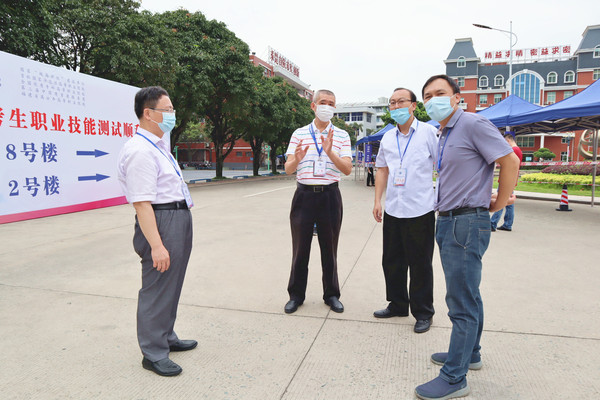 5月20日下午,高職分類考試招生職業(yè)技能測試首日,福建省教育廳林和平廳長蒞校檢查,對職業(yè)技能測試和疫情防控工作進行現(xiàn)場指導(dǎo)。學(xué)院黨委書記張海明,院長陳錦輝,黨委副書記陳宜大陪同檢查。