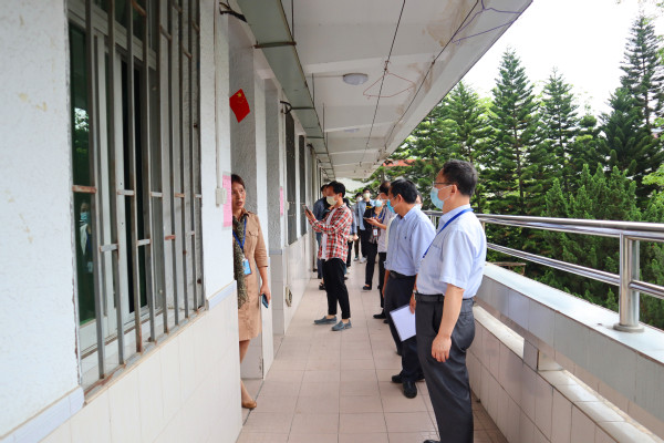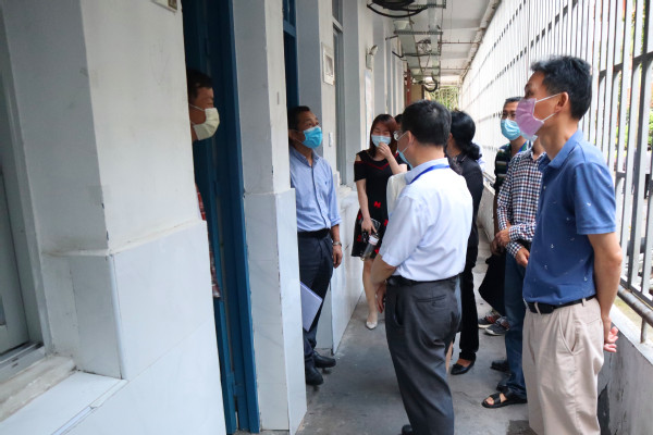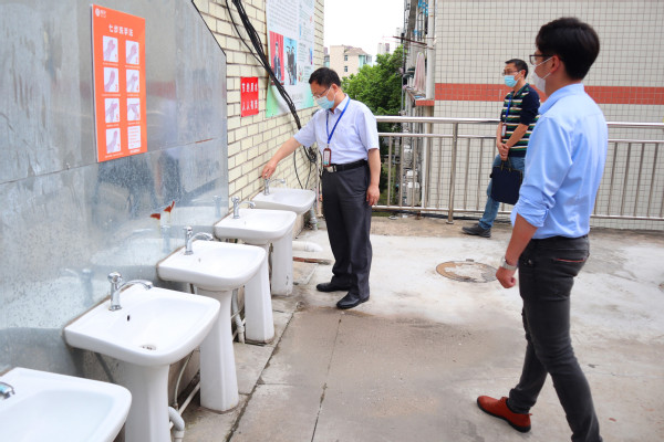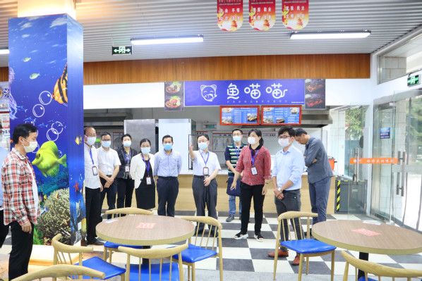 陳錦輝院長一行自高蓋山校區(qū)起,先后步行至學(xué)院南區(qū)、北區(qū)。途中,深入學(xué)院11個教學(xué)系,對學(xué)生宿舍、學(xué)生食堂、教工食堂、教學(xué)樓等重點區(qū)域進行仔細檢查,并認真聽取了各系、各工作組負責(zé)人關(guān)于疫情防控及開學(xué)準備情況的匯報。