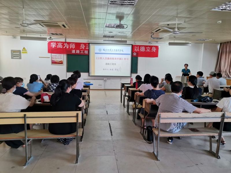 為深入貫徹黨的十九大精神,全面加強(qiáng)教師隊(duì)伍師德師風(fēng)建設(shè),同時(shí)響應(yīng)學(xué)院“樹師德、正師風(fēng),爭(zhēng)做‘四有’好老師”的號(hào)召,道路工程系于2020年6月23日利用例會(huì)學(xué)習(xí)時(shí)間對(duì)全體教職工進(jìn)行了“師德師風(fēng)”專題培訓(xùn)。