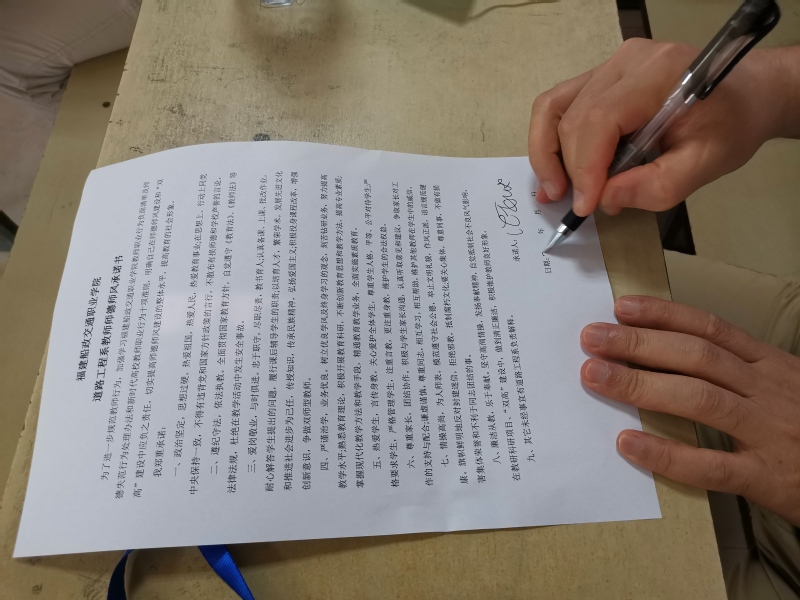 隨后由副主任盛教授組織老師們簽訂道路工程系2020年師德師風(fēng)承諾書。