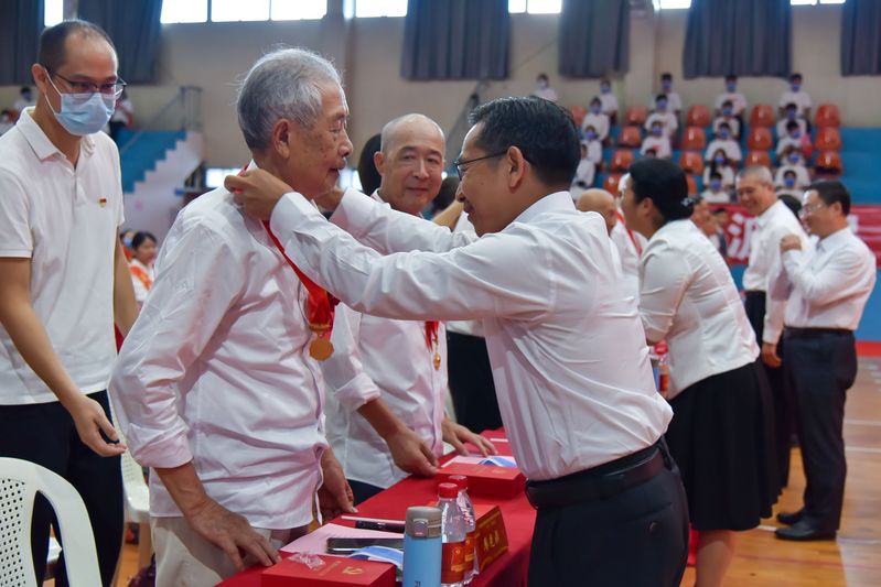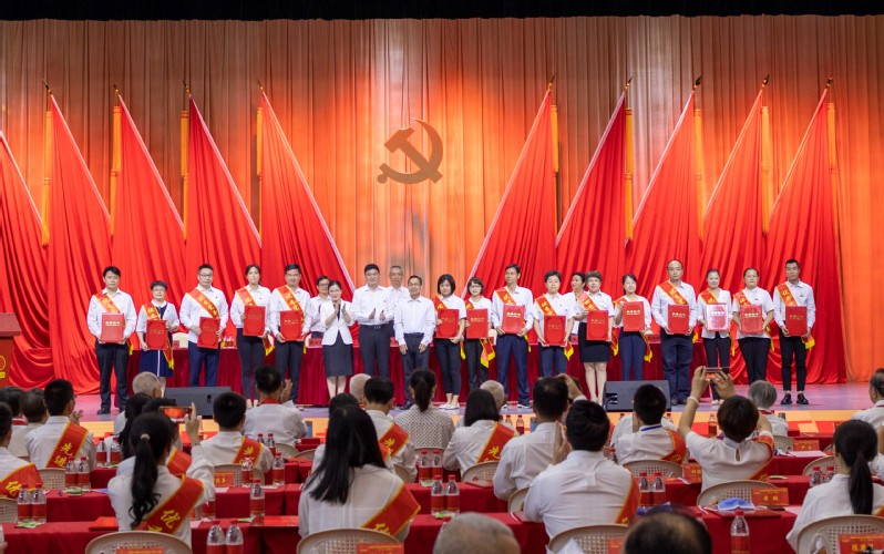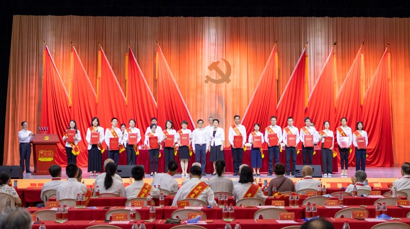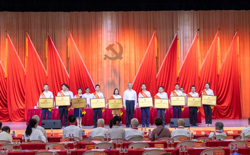 黨委班子成員為“光榮在黨50年”老黨員頒發(fā)紀(jì)念章,為優(yōu)秀共產(chǎn)黨員、優(yōu)秀黨務(wù)工作者和先進(jìn)基層黨組織頒獎。