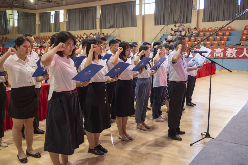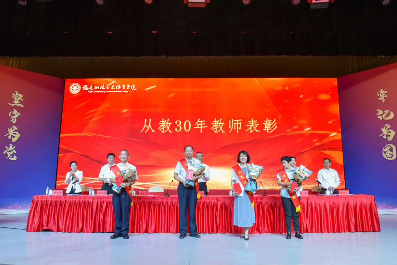 表彰大會上,在陳常暉教授的領(lǐng)誓下,新進教師進行了集體入職宣誓儀式。學(xué)院領(lǐng)導(dǎo)為從教三十年教師頒發(fā)榮譽證書,為本學(xué)年退休人員舉行了光榮退休儀式,并安排新進教師代表為他們獻花。