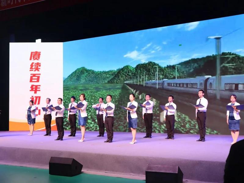 中場,我院軌道交通學(xué)院的教職工們?yōu)楝F(xiàn)場觀眾們準(zhǔn)備了朗誦節(jié)目《交通軌道新生活》,老師們激情澎湃地歌頌新時代職業(yè)風(fēng)采,暢想職業(yè)教育未來。