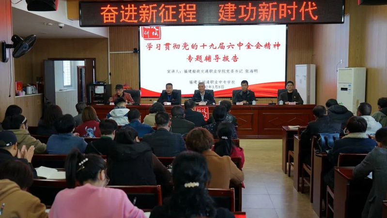 3月8日,省教育系統(tǒng)“百人宣講團(tuán)”成員、學(xué)院黨委書記張海明赴福建省閩清職業(yè)中專學(xué)校宣講黨的十九屆六中全會(huì)精神,與閩清職專教師共話黨的百年重大成就和歷史經(jīng)驗(yàn),展望職業(yè)教育發(fā)展美好前景。