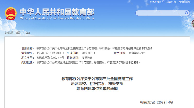 日前,教育部官網(wǎng)發(fā)布《教育部辦公廳關(guān)于公布第三批全國黨建工作示范高校、標桿院系、樣板支部培育創(chuàng)建單位名單的通知》,我院土木工程學院第四黨支部入選全國黨建工作示范樣板支部培育創(chuàng)建單位。