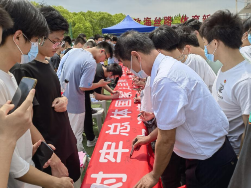 4月15日,通識(shí)教育學(xué)院組織師生在北區(qū)體育場(chǎng)舉行了國家安全教育日宣誓簽名活動(dòng),300余人參加?;顒?dòng)中,學(xué)生代表帶領(lǐng)進(jìn)行“爭(zhēng)做新時(shí)代國家安全的鋼鐵衛(wèi)士宣誓”,隨后全體師生為踐行宣誓承諾進(jìn)行簽名,切實(shí)提高了廣大師生的國家安全意識(shí),培養(yǎng)大學(xué)生的愛國主義精神。