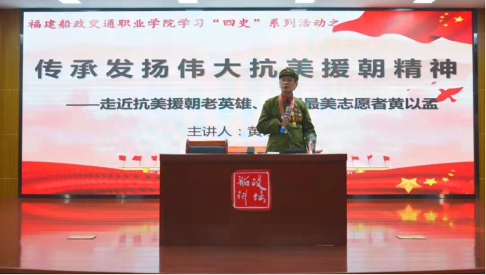 積極組織師生通過線上和線下方式參加相關(guān)知名專家的專題講座,進(jìn)一步提升四史學(xué)習(xí)理論深度。結(jié)合入黨積極分子培訓(xùn)班、青年馬克思主義者培訓(xùn)班,邀請(qǐng)老教師、老黨員、老干部、老戰(zhàn)士、老勞模等共同上好黨史專題黨課。邀請(qǐng)抗美援朝老英雄、全國(guó)最美志愿者、89歲高齡的黃以孟老先生為廣大師生作主題報(bào)告;邀請(qǐng)福建省黨史方志辦俞智主任到校為全體思政教師及讀書社、求是社、辯論社等學(xué)生社團(tuán)成員開展專題討論,了解福建革命史。