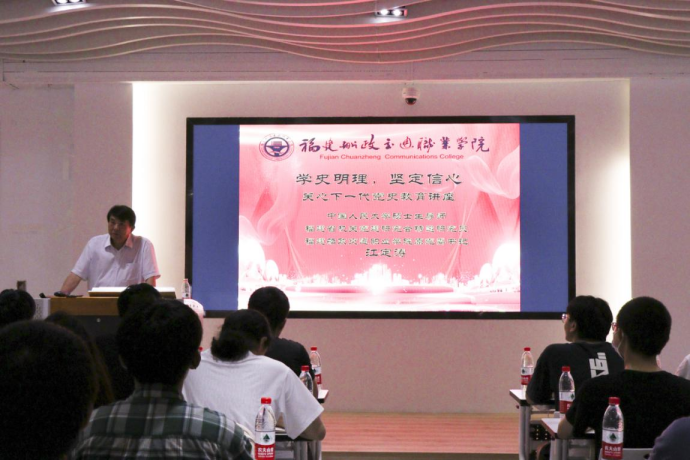 以史為鑒,開創(chuàng)未來。為推動黨史學習教育常態(tài)化長效化開展,以實際行動迎接黨的二十大勝利召開,2022年5月31日下午,學院關(guān)工委邀請“五老”代表、中國人民大學碩士生導師、福建省機關(guān)黨建研究會特邀研究員、福建船政交通職業(yè)學院原黨委書記江定濤做《學史明理 堅定信心》黨史學習教育專題講座。馬克思主義學院教師代表、習近平新時代中國特色社會主義思想讀書社、船政青年求是社、辯論協(xié)會、法學社等師生百余人參加講座。