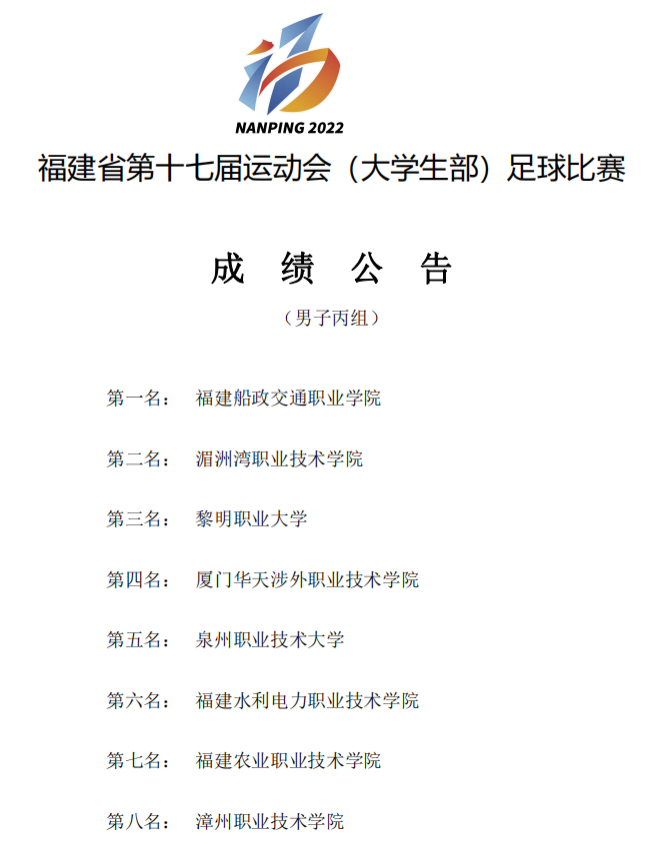 喜訊|我院榮獲福建省第十七屆運(yùn)動會(大學(xué)生部)足球比賽(男子丙組)第一名