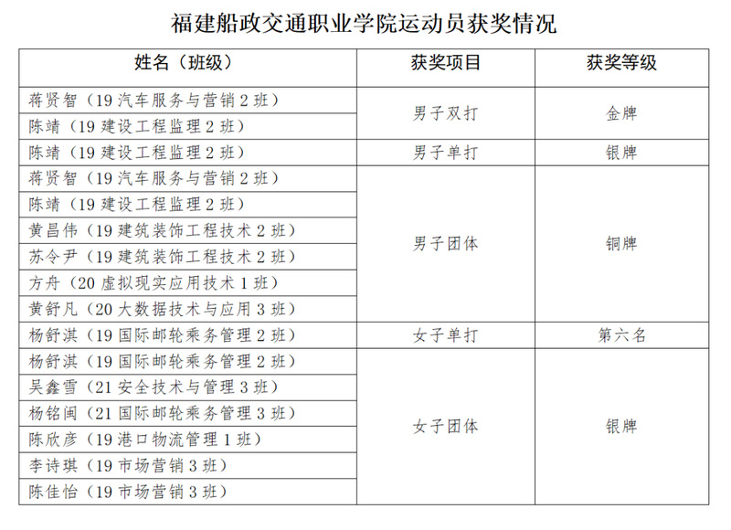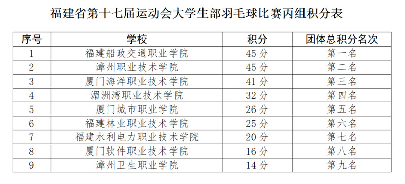 2022年7月27日-8月3日,福建省第十七屆運動會(大學(xué)生部)羽毛球比賽在華僑大學(xué)泉州校區(qū)開賽,來自全省43所高校的353名運動員參賽。本次比賽包括男子單打、男子雙打、女子單打、女子雙打、男子團體、女子團體6個項目,我院羽毛球代表隊榮獲比賽丙組團體總積分第一名的優(yōu)異成績,并獲得“體育道德風(fēng)尚獎運動隊”榮譽稱號,運動員蔣賢智、楊舒淇獲個人“體育道德風(fēng)尚獎”,王姍姍老師獲“優(yōu)秀教練員”榮譽稱號。