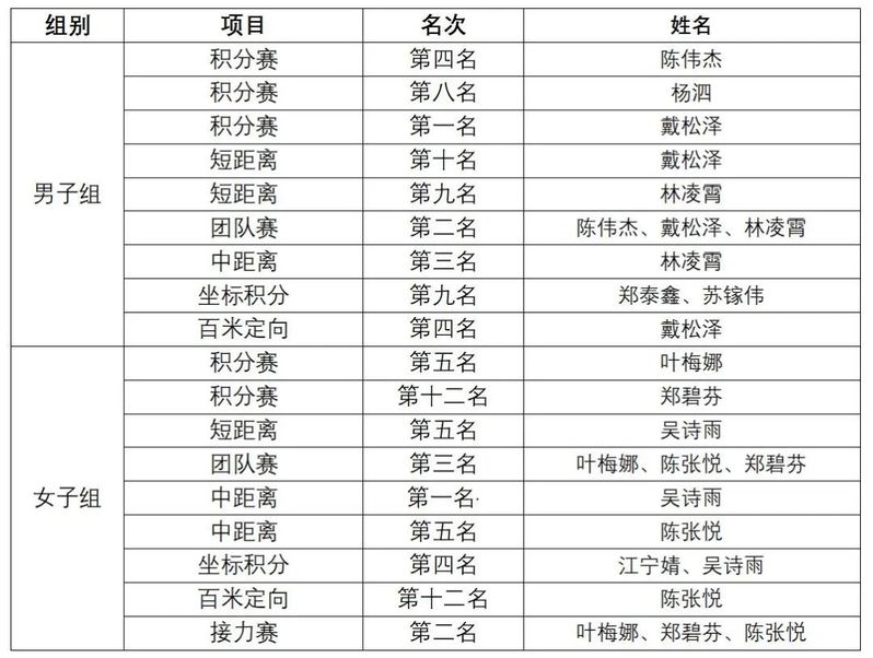 定向越野代表隊(duì)獲得團(tuán)體總分第一名