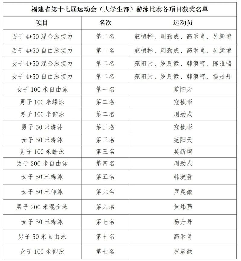 游泳代表隊(duì)獲得團(tuán)體總分第一名