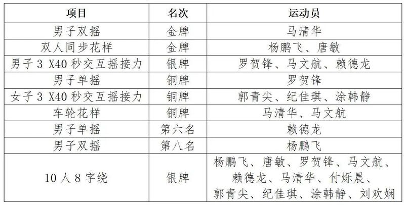 花樣跳繩代表隊(duì)獲得團(tuán)體總分第一名