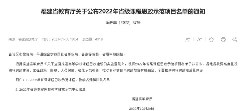 近日,福建省教育廳公布了2022年省級課程思政示范項目名單,我校推薦申報的《大學(xué)生職業(yè)生涯與發(fā)展規(guī)劃》課程和教學(xué)團隊入選2022年省級課程思政示范課程、教學(xué)名師和團隊。這是我校繼去年《船政文化》《客艙乘務(wù)英語聽說》入選省級課程思政示范課程項目、課程思政教學(xué)研究中心入選省級課程思政教學(xué)研究示范中心項目之后又一重要成果。