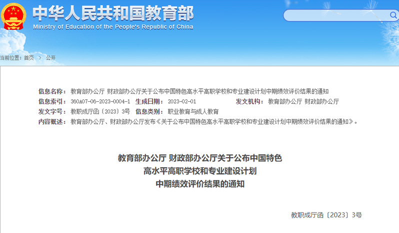 日前,教育部辦公廳、財(cái)政部辦公廳發(fā)布《關(guān)于公布中國(guó)特色高水平高職學(xué)校和專業(yè)建設(shè)計(jì)劃中期績(jī)效評(píng)價(jià)結(jié)果的通知》,確定了全國(guó)197所建設(shè)單位的評(píng)價(jià)等級(jí),我校獲評(píng)等級(jí)為“優(yōu)秀”。