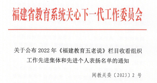榮獲2022年《福建教育五老說(shuō)》欄目收看組織工作先進(jìn)集體