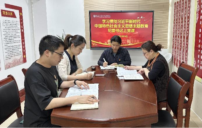 5月16日,校黨委委員、紀(jì)委書記張輝在行政樓417會議室上主題教育專題黨課,紀(jì)委辦全體干部參加了黨課學(xué)習(xí)。