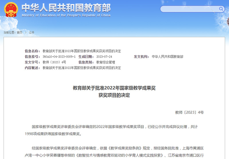 國家級教學(xué)成果獎(jiǎng)是我國教育領(lǐng)域政府層面的最高獎(jiǎng)勵(lì),旨在獎(jiǎng)勵(lì)在教育教學(xué)研究中取得顯著成果的集體和個(gè)人,鼓勵(lì)教育工作者不斷提高教學(xué)水平和教育質(zhì)量。我校再次獲得三項(xiàng)二等獎(jiǎng),充分彰顯了我校堅(jiān)持以習(xí)近平新時(shí)代中國特色社會(huì)主義思想為指導(dǎo),落實(shí)立德樹人根本任務(wù),以提高人才培養(yǎng)質(zhì)量為核心,不斷深化內(nèi)涵建設(shè)所取得的優(yōu)異成果。