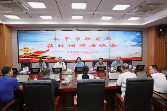 在我省職教戰(zhàn)線聚焦“一體兩翼五重點”,堅持以教促產(chǎn)、以產(chǎn)助教、產(chǎn)教融合、產(chǎn)學合作,延伸教育鏈、服務產(chǎn)業(yè)鏈、支撐供應鏈、打造人才鏈、提升價值鏈,打造行業(yè)產(chǎn)教融合共同體之際,7月31日,南平市教育局黨組書記、局長、市委教育工委書記楊鑾,黨組成員、副局長、市委教育工委委員黃小青,黨組成員、副局長、市委教育工委委員林述剛一行蒞臨我校,就深化校地合作進行深入交流。我校黨委委員、副院長陳艷紅陪同調(diào)研。