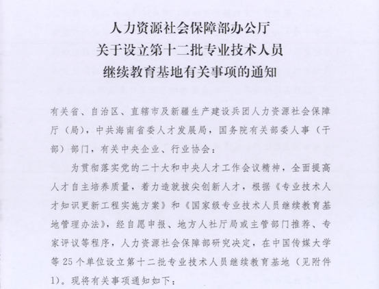 近日,人力資源社會(huì)保障部辦公廳下發(fā)《關(guān)于設(shè)立第十二批專業(yè)技術(shù)人員繼續(xù)教育基地有關(guān)事項(xiàng)的通知》,公布了包含25個(gè)單位的全國(guó)第十二批專業(yè)技術(shù)人員繼續(xù)教育基地名單,我校榜上有名。