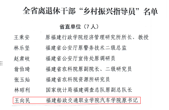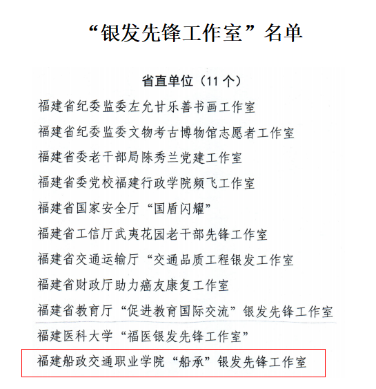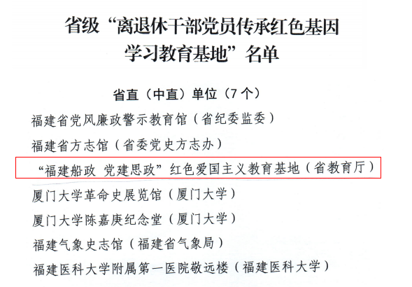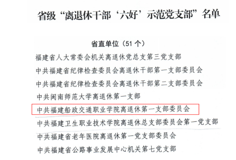 近日,中共福建省委老干部局中共福建省委離退休干部工作委員會印發(fā)《關(guān)于確定省級“離退休干部‘六好’示范黨支部”等“五個(gè)一百”名單的通知》,學(xué)院“福建船政 黨建思政”紅色愛國主義教育基地獲批省級“離退休黨員傳承紅色基因?qū)W習(xí)教育基地”,中共福建船政交通職業(yè)學(xué)院離退休第一支部委員會榮獲“省級離退休干部‘六好’示范黨支部”榮譽(yù)稱號,學(xué)院“船承”銀發(fā)先鋒工作室被確定為“銀發(fā)先鋒工作室”,王向民同志被評為全省離退休干部“鄉(xiāng)村振興指導(dǎo)員”。