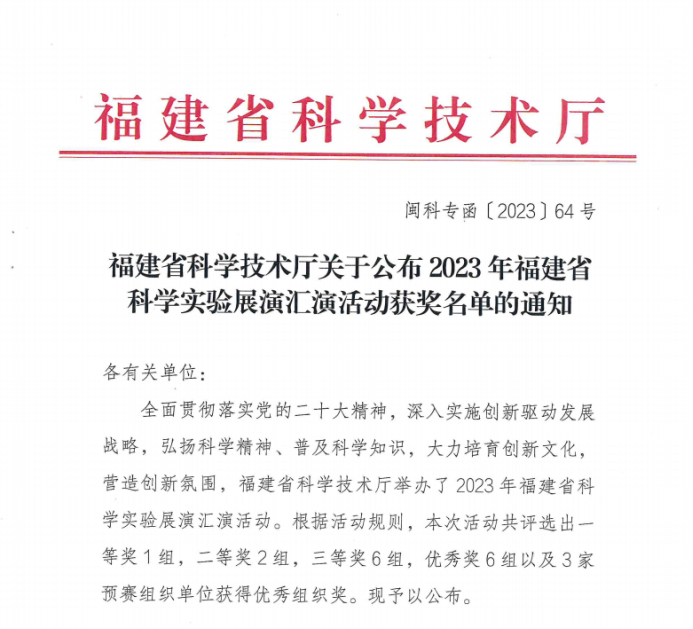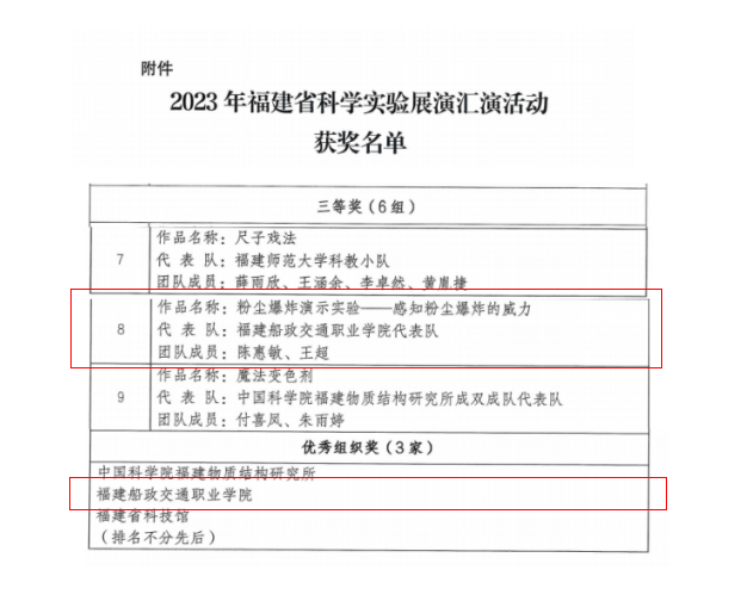 近日,由福建省科學(xué)技術(shù)廳主辦的首屆“福建省科學(xué)實驗展演匯演大賽”決賽在福州舉行,我院科技處選送的安全與環(huán)境學(xué)院作品“面粉塵爆炸”科普實驗項目榮獲三等獎,學(xué)院榮獲優(yōu)秀組織獎。