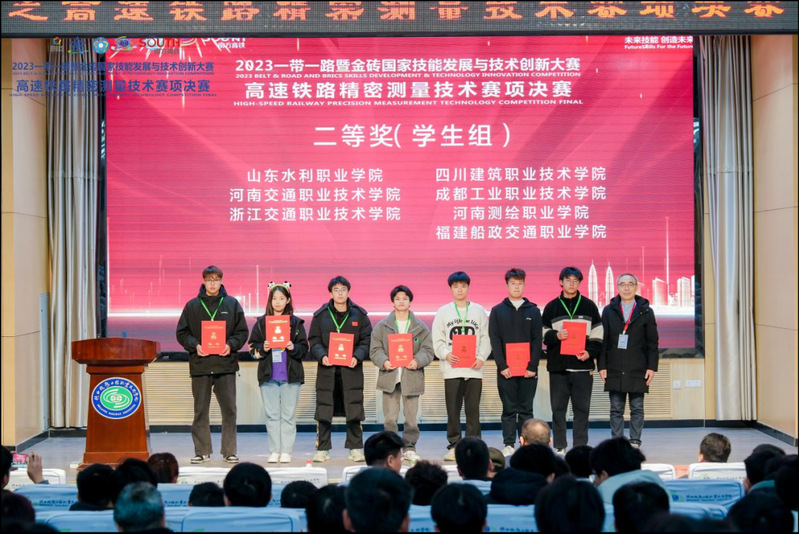 近日,2023一帶一路暨金磚國(guó)家技能發(fā)展與技術(shù)創(chuàng)新大賽“高速鐵路精密測(cè)量技術(shù)”賽項(xiàng)全國(guó)總決賽在陜西鐵路職業(yè)技術(shù)學(xué)院舉辦。來(lái)自國(guó)內(nèi)外的39支參賽隊(duì)、156名參賽選手參加比賽。經(jīng)過(guò)激烈角逐,我院榮獲“優(yōu)秀組織獎(jiǎng)”;軌道交通學(xué)院簡(jiǎn)瑞杰、陳俊榮、馬濤、向鵬鵬4位同學(xué)榮獲團(tuán)體賽二等獎(jiǎng);指導(dǎo)老師李閩、林淦獲得“優(yōu)秀指導(dǎo)教師”榮譽(yù)稱(chēng)號(hào)。