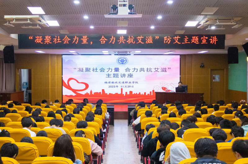 12月1日下午,“凝聚社會力量,合力共抗艾滋”主題防艾系列宣傳活動(dòng)在學(xué)院舉辦。此次活動(dòng)由倉山區(qū)衛(wèi)健局、倉山區(qū)疾控中心主辦,福建船政交通職業(yè)學(xué)院、東升街道社區(qū)衛(wèi)生服務(wù)中心承辦。倉山區(qū)政府黨組成員、副區(qū)長連錦,學(xué)院黨委委員、副院長陳艷紅,福州市衛(wèi)健委四級調(diào)研員林茂發(fā),福州市疾控中心副主任謝兆勛,倉山區(qū)衛(wèi)健局黨組成員、局長徐懷蘋等領(lǐng)導(dǎo)出席活動(dòng)。