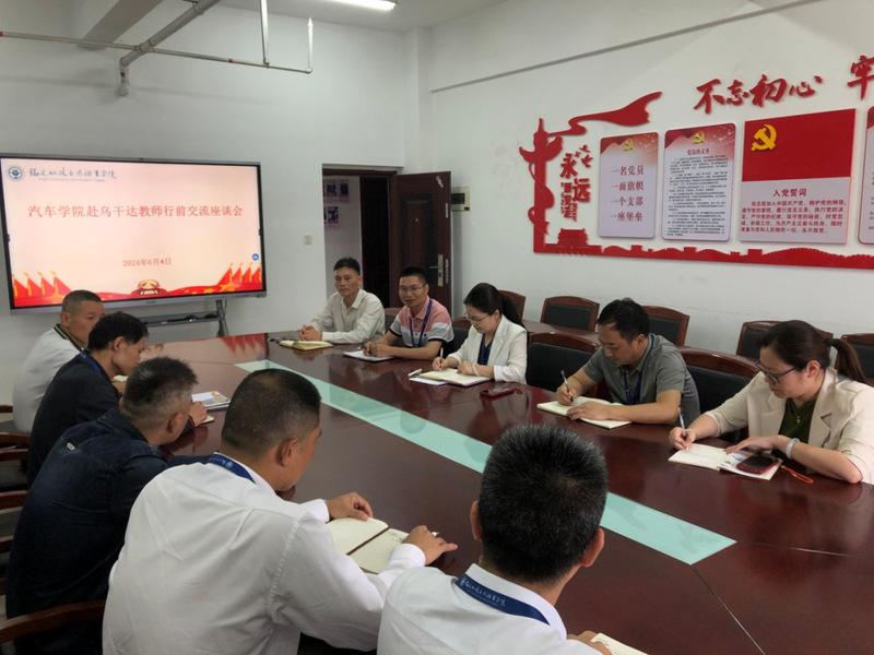 6月4日,學(xué)院教師赴烏干達(dá)行前交流座談會(huì)在汽車學(xué)院會(huì)議室召開(kāi)。學(xué)院黨委委員、副院長(zhǎng)陳艷紅出席座談會(huì),對(duì)外交流中心、人事處和汽車學(xué)院相關(guān)負(fù)責(zé)人出席了此次座談會(huì)。