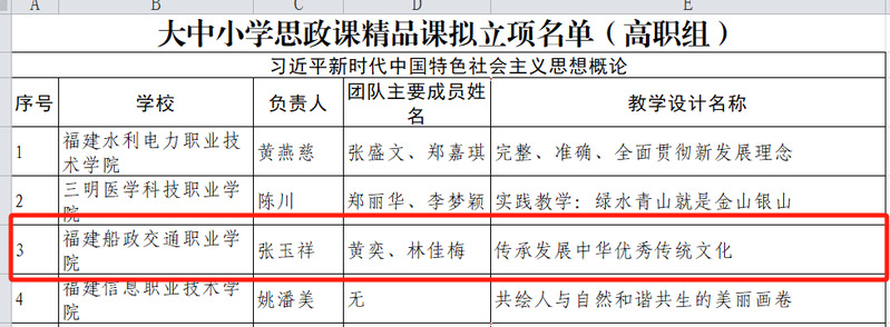 近日,省教育廳發(fā)布關(guān)于大中小學(xué)思政課精品課擬立項(xiàng)名單,我院4項(xiàng)教學(xué)設(shè)計(jì)入選。
