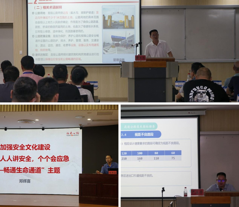 此次培訓內(nèi)容豐富,形式多樣。邀請到了福建省交通運輸廳綜合執(zhí)法監(jiān)督局四級調(diào)研員黃生存、原省公路事業(yè)發(fā)展中心副主任鄭輝喜、福建省應急管理專家嚴益芳為學員們做專題講座。內(nèi)容涵蓋福建省路政管理(執(zhí)法)體制介紹、執(zhí)法安全防護、高速公路安全隱患排查等方面。除專題講座外,還前往福建省高速公路路網(wǎng)監(jiān)控指揮中心、青云山服務區(qū)等單位進行現(xiàn)場教學及業(yè)務交流。