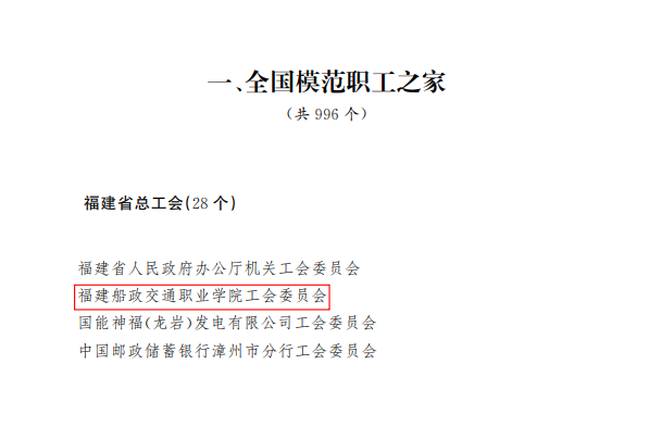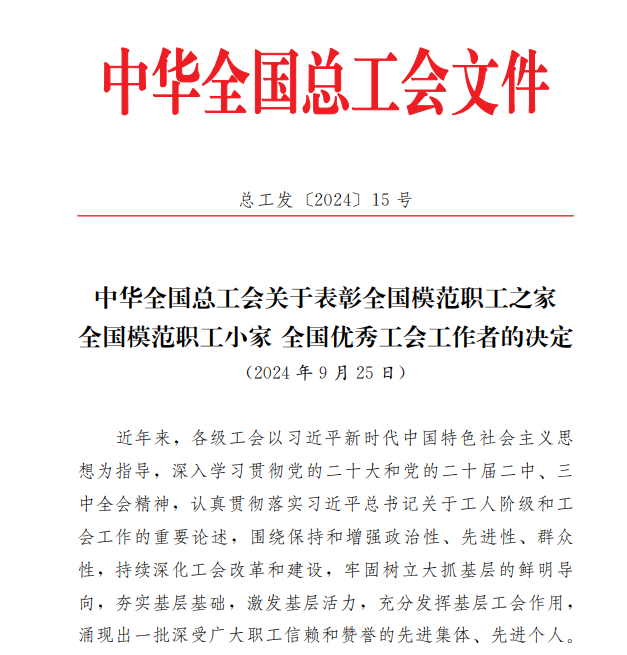 近日,中華全國總工會揭曉“全國模范職工之家、全國模范職工小家、全國優(yōu)秀工會工作者”評選結(jié)果,我院工會榮獲“全國模范職工之家”稱號?!叭珖7堵毠ぶ摇睒s譽(yù)稱號由中華全國總工會設(shè)立,是全國工會系統(tǒng)表彰先進(jìn)集體的最高榮譽(yù),是對基層工會工作的最高褒獎和肯定。