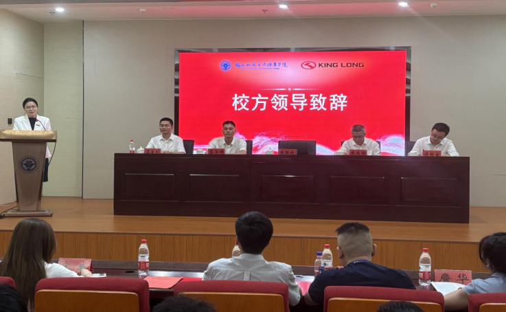 開班儀式上,陳艷紅副院長發(fā)表熱情洋溢的致辭,深刻闡述了“以教促產(chǎn)、以產(chǎn)助教”的核心理念,強調(diào)通過延伸教育鏈、服務(wù)產(chǎn)業(yè)鏈、支撐供應(yīng)鏈、打造人才鏈、提升價值鏈,構(gòu)建產(chǎn)教深度融合的生態(tài)系統(tǒng)。她寄語“金龍班”的學(xué)子們,要珍惜學(xué)習(xí)機會,扎實理論基礎(chǔ),勇于實踐探索,提升國際視野,在廈門金龍的廣闊平臺上綻放青春光彩,成為推動中國客車行業(yè)國際化進程的中堅力量。