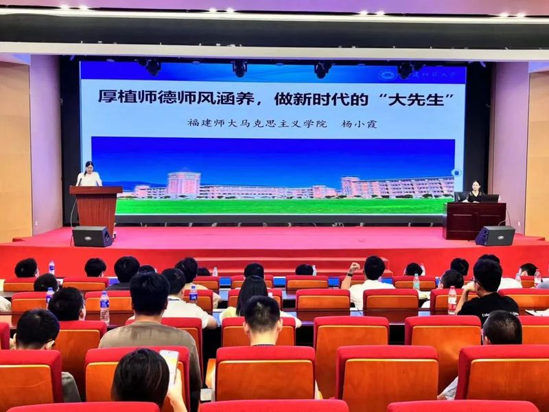2024年新教師培訓(xùn)特邀福建師范大學(xué)楊小霞副教授以《厚植師德師風(fēng)涵養(yǎng),做新時(shí)代的“大先生”》為題,從師德師風(fēng)的內(nèi)涵及其相互關(guān)系、加強(qiáng)新時(shí)代高校師德師風(fēng)建設(shè)的重要意義等方面進(jìn)行闡釋。楊小霞副教授以豐富的經(jīng)驗(yàn)、淵博的學(xué)識、獨(dú)特的見解為我們講述了一場精彩的師德教育“大思政”課,贏得了陣陣掌聲。
