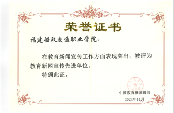 近日,為表彰我院在教育新聞宣傳工作中的突出表現(xiàn),中國教育報(bào)授予我院“教育新聞宣傳先進(jìn)單位”稱號(hào)。