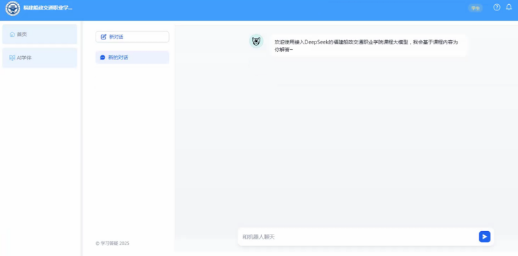 在這一政策背景下,我院積極響應(yīng)國(guó)家號(hào)召,2月28日,我院信息與智慧交通學(xué)院成功完成“深度求索 DeepSeek-R1”大模型的本地化部署,并正式發(fā)布基于DeepSeek推理的課程大模型平臺(tái)。這標(biāo)志著我院在人工智能技術(shù)賦能職業(yè)教育教學(xué)實(shí)踐方面邁出了關(guān)鍵一步,為職業(yè)教育的創(chuàng)新發(fā)展注入了強(qiáng)大動(dòng)力。