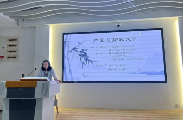 為深入挖掘船政文化內(nèi)涵,弘揚(yáng)船政精神。近日,倉(cāng)山區(qū)社科聯(lián)與對(duì)湖街道新時(shí)代文明實(shí)踐所與我院共同舉辦“閩都文化名家講”倉(cāng)山專場(chǎng)活動(dòng)。倉(cāng)山區(qū)社科聯(lián)主席林輝、副主席方福楊,倉(cāng)山區(qū)對(duì)湖街道工作人員參加現(xiàn)場(chǎng)活動(dòng),我院船政文化研究中心主任金秋蓉教授受邀作“嚴(yán)復(fù)與船政文化”主題講座。