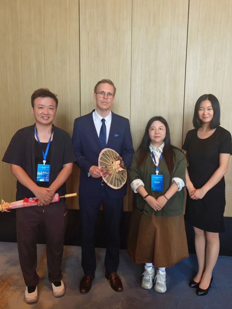 福州油紙傘不僅作為精美的藝術(shù)品被欣賞,更成為傳遞中華情誼、促進(jìn)民心相通的橋梁。我院師生將精心制作的福州油紙傘作為象征友誼與祝福的文化禮物,贈予了到訪展位的各國友人。西班牙前首相薩帕特羅先生饒有興致地欣賞了油紙傘,并欣然接受了這份蘊(yùn)含東方美意與匠心的禮物。中國歐盟協(xié)會秘書長宋敬武先生也對我院展示的福州非遺油紙傘項目給予了高度評價和特別關(guān)注,詳細(xì)詢問了項目在我院職業(yè)教育中的傳承與創(chuàng)新實(shí)踐。我院非遺傳承教育成果得到了來自與會各方的認(rèn)可,并贊譽(yù)福州非遺油紙傘為連接中歐文明的獨(dú)特信物。