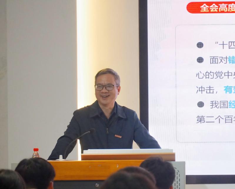 報(bào)告會(huì)上,陳宜大緊緊圍繞學(xué)習(xí)貫徹習(xí)近平總書(shū)記在黨的二十屆四中全會(huì)上的重要講話精神和全會(huì)《建議》,從全會(huì)的基本情況和《建議》起草過(guò)程,“十五五”時(shí)期在基本實(shí)現(xiàn)社會(huì)主義現(xiàn)代化進(jìn)程中的重要地位,“十五五”時(shí)期經(jīng)濟(jì)社會(huì)發(fā)展的指導(dǎo)方針、主要目標(biāo)、戰(zhàn)略任務(wù)、重要舉措,堅(jiān)持和加強(qiáng)黨的全面領(lǐng)導(dǎo)等方面,并緊密結(jié)合福建省、職業(yè)教育和學(xué)院的發(fā)展實(shí)際,對(duì)黨的二十屆四中全會(huì)精神進(jìn)行了全面系統(tǒng)、深入透徹的宣講解讀。他勉勵(lì)廣大師生,要深刻領(lǐng)會(huì)全會(huì)精神的實(shí)質(zhì)與核心要義,找準(zhǔn)個(gè)人在國(guó)家發(fā)展大局、區(qū)域經(jīng)濟(jì)社會(huì)發(fā)展定位中的坐標(biāo),在教書(shū)育人與勤奮學(xué)習(xí)的實(shí)踐中,為實(shí)現(xiàn)中華民族偉大復(fù)興的中國(guó)夢(mèng)貢獻(xiàn)力量。