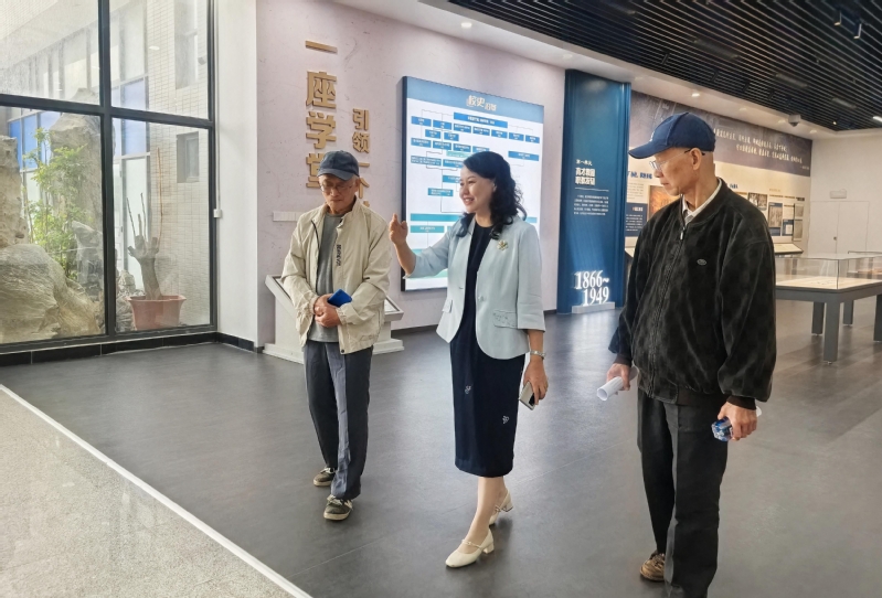 儀式結(jié)束后,陳明光先生和葉華先生在陳群及圖書館負(fù)責(zé)人的陪同下參觀校史館,并進(jìn)行座談交流。陳群介紹了學(xué)院辦學(xué)歷程和成效,她表示,學(xué)院始終秉承船政學(xué)堂 “產(chǎn)教融合、開放辦學(xué)”的辦學(xué)精神,在高技能人才培養(yǎng)、促進(jìn)學(xué)生高質(zhì)量就業(yè)、深化閩臺交流合作等方面持續(xù)發(fā)力,取得了一系列成果。陳明光先生和葉華先生對學(xué)院在服務(wù)支撐地方支柱產(chǎn)業(yè)、推動其轉(zhuǎn)型升級方面取得的顯著成效給予了高度評價(jià),他們表示將繼續(xù)關(guān)注學(xué)院發(fā)展,祝愿學(xué)院各項(xiàng)事業(yè)蓬勃發(fā)展,蒸蒸日上。